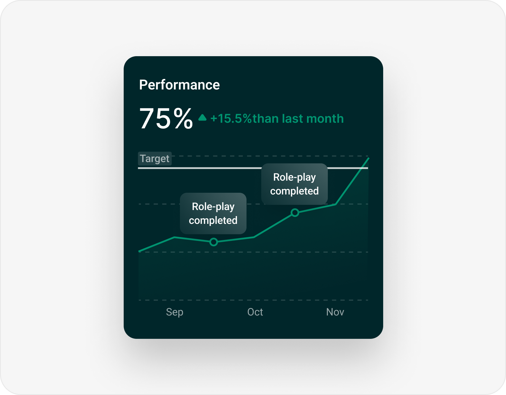 Sales teams combine real conversation feedback with scalable role-play training, giving them continuous insight into their performance.